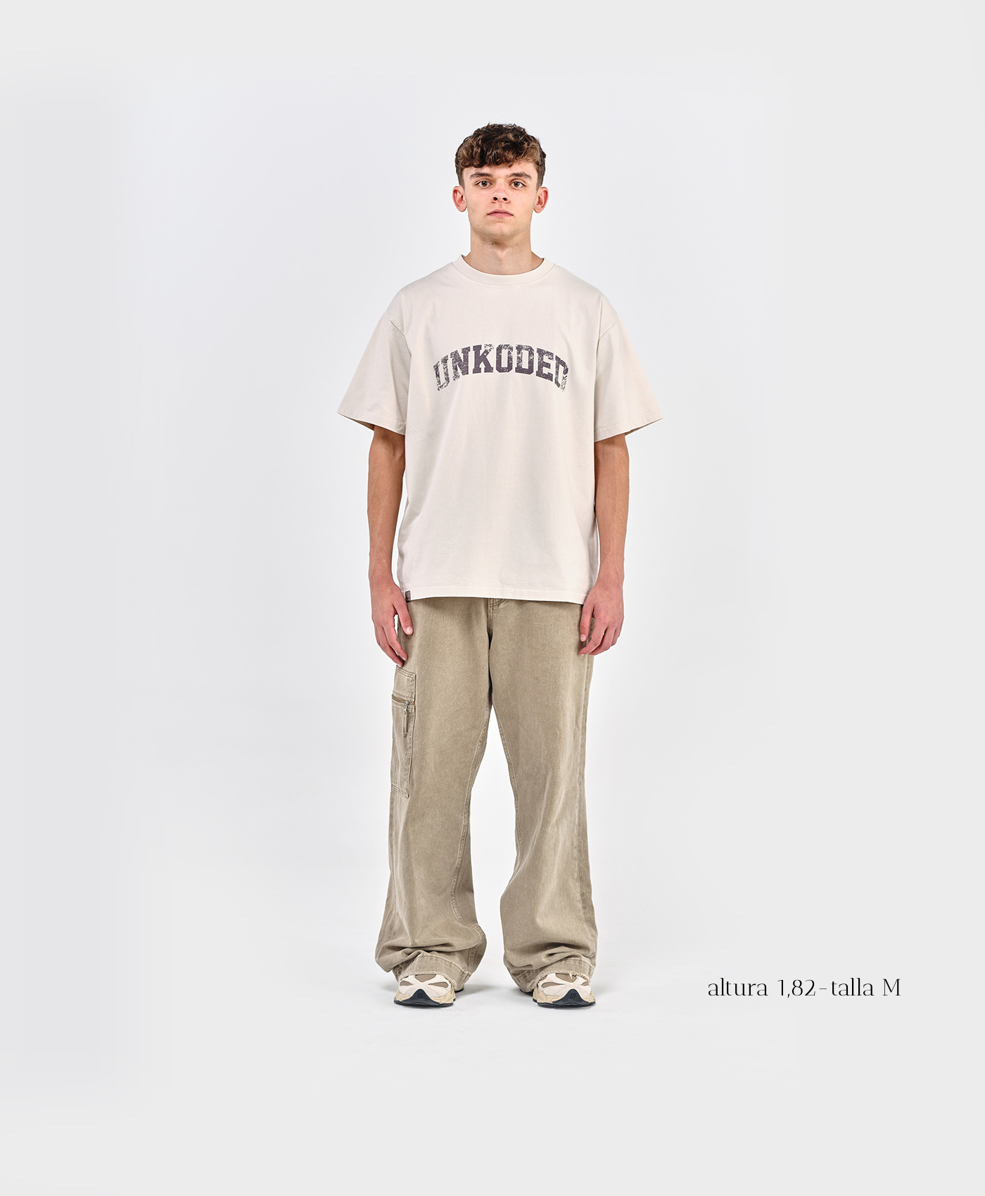 Camiseta en color crema, confeccionada en algodón de alta densidad que aporta estructura y suavidad. Su diseño destaca por el logo UNKODED con acabado vintage desgastado en el pecho, aportando un toque retro y urbano. Con corte oversize y hombros caídos, esta pieza ofrece un fit relajado y moderno, ideal para combinar con looks streetwear.